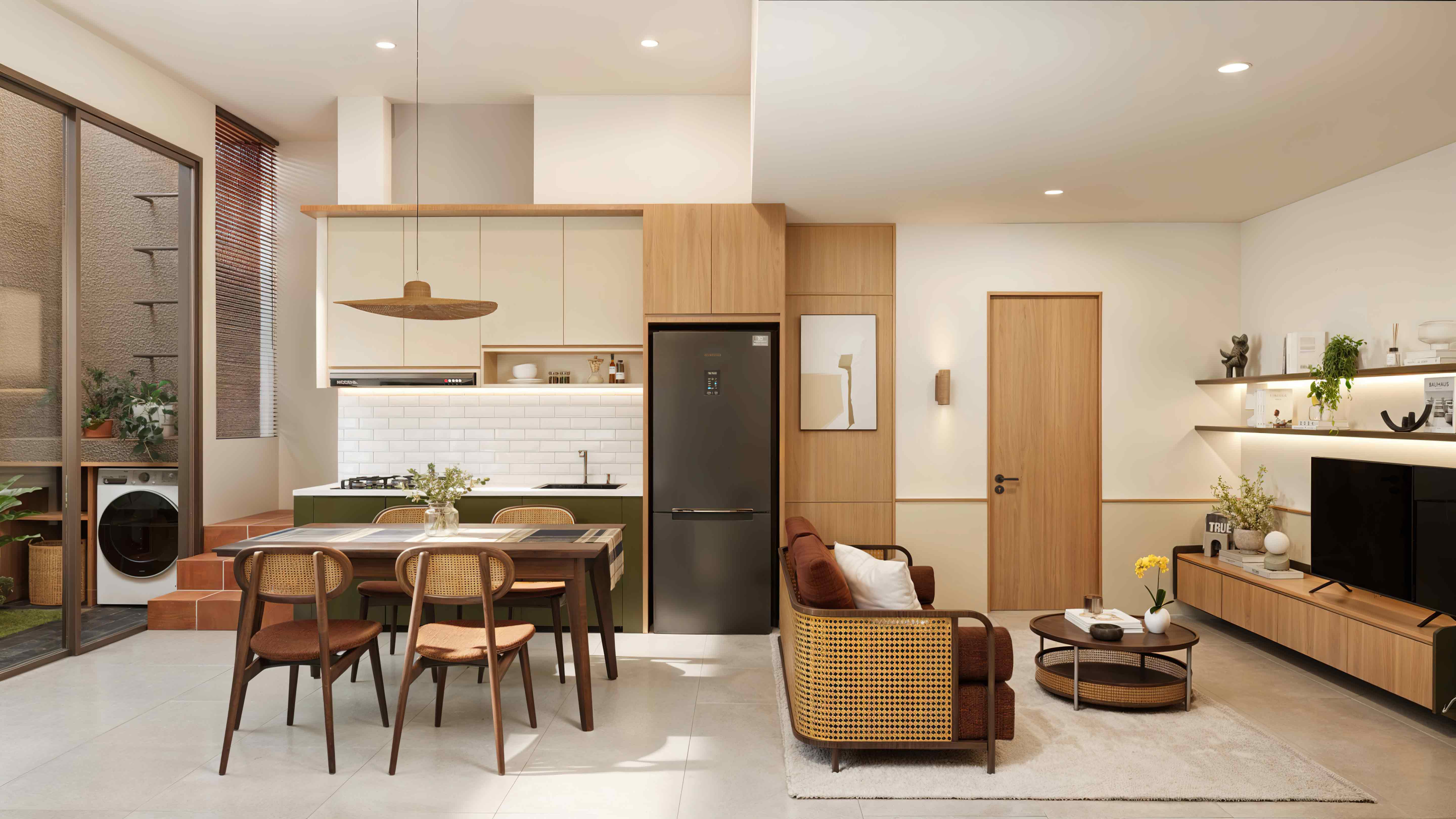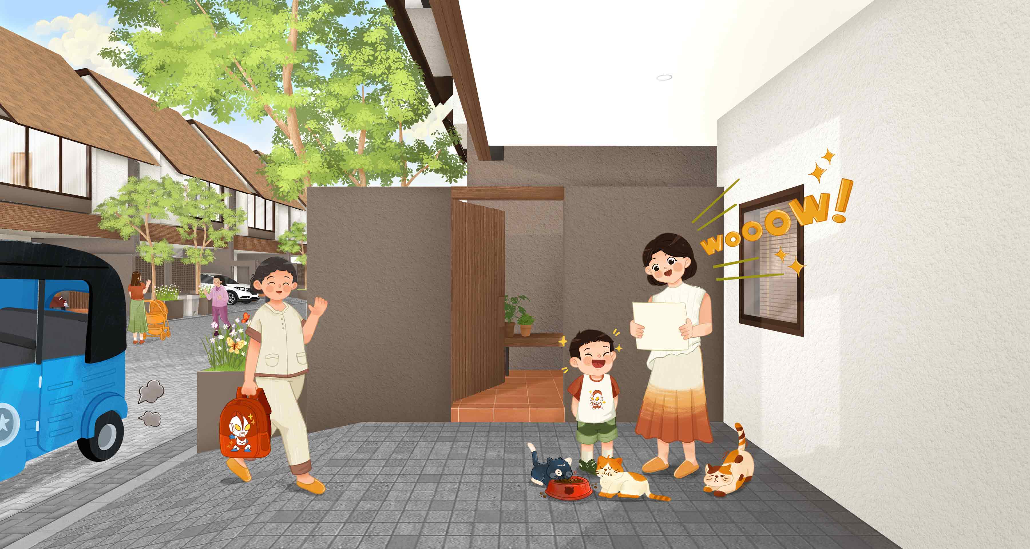 Windflower House is Easton Urban Kapital’s newest project located in Buaran, Serpong, South Tangerang. Built on a 94.5 m² (7x13.5) land area with a building size of 135 m², this home is designed by rafaelmiranti architects and features all the elements we love — from the Inner Courtyard and Sunny Patio to the cozy Daybed. The development is complemented by exciting shared facilities, including a swimming pool, gym, lounge, Central Park, Social Avenue, playground, tennis & basketball court, and library.